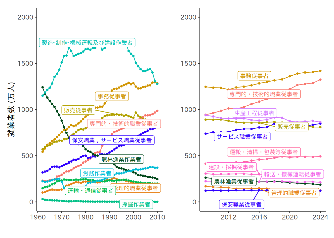 # 労働力調査 長期時系列【表6】年平均結果 6-2 職業別就業者数